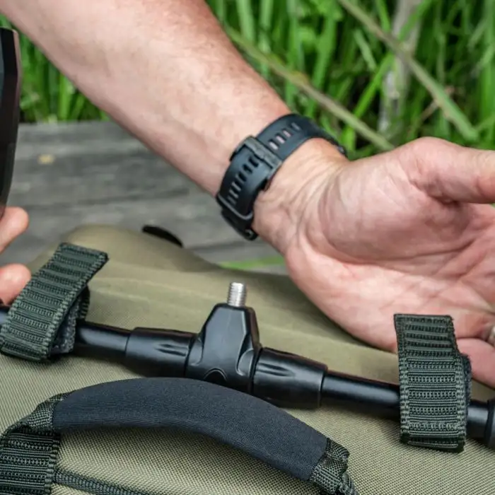 Der Transition Fold-A-Sack ist ideal für Angler, die eine flache e Tasche mit flacheren Fächern und einfacherem Zugriff auf die gesamte Ausrüstung wünschen. Der zusätzliche Vorteil des besonderen Faltdesigns ist, dass er an schrägen Ufern nicht umkippt und bei Übernachtungsausflügen auch gut unter Ihren Bedchair passt. Oben auf der Tasche befinden sich zwei Klettschlaufen für Dinge wie Faltnetze und Banksticks und 4 D-Ringe auf der Front, die für die Befestigung von Karabinern usw. vorgesehen sind